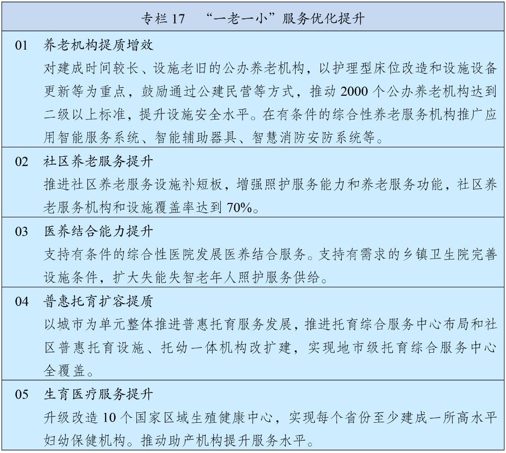 堅持兒童優(yōu)先發(fā)展,切實保障兒童生存權(quán)、發(fā)展權(quán)、受保護權(quán)和參與權(quán)。推進兒童近視、超重肥胖和孤獨癥等早篩查早干預(yù)。提高兒童醫(yī)療保健服務(wù)水平,豐富兒童用藥品種。加強困境兒童關(guān)愛服務(wù),推進流動兒童、留守兒童分類幫扶,有效提升福利保障水平。完善兒童早期發(fā)展服務(wù)。制定實施兒童傷害防控行動計劃,強化未成年人違法犯罪預(yù)防和治理,有效防治學(xué)生欺凌。加強未成年人網(wǎng)絡(luò)保護,拓展網(wǎng)絡(luò)育人空間和陣地。推進兒童友好建設(shè),營造關(guān)心關(guān)愛下一代的社會環(huán)境。