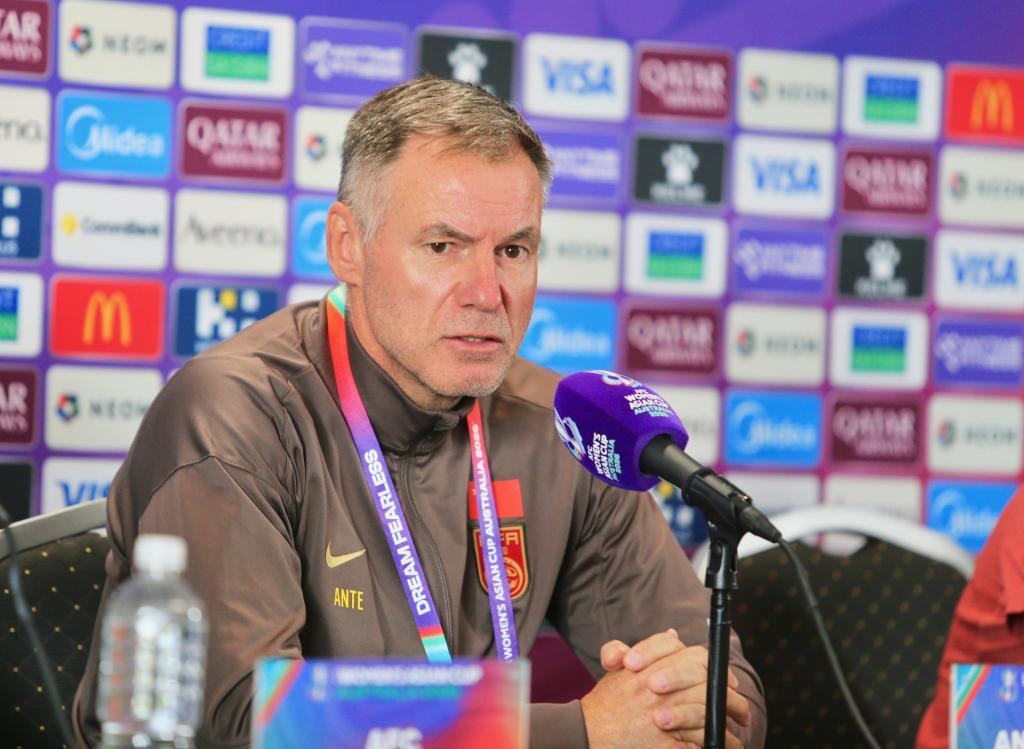 3月13日,中國(guó)女足主教練安特·米利西奇在新聞發(fā)布會(huì)上。新華社發(fā)(周丹攝)