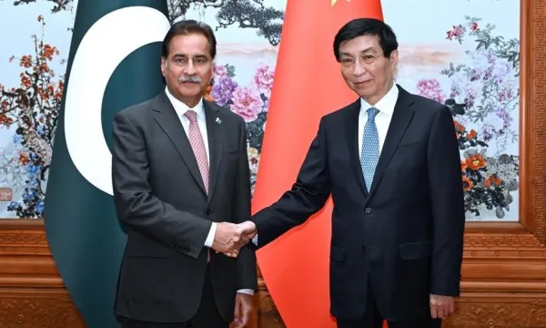 王滬寧會(huì)見巴基斯坦國(guó)民議會(huì)議長(zhǎng)薩迪克