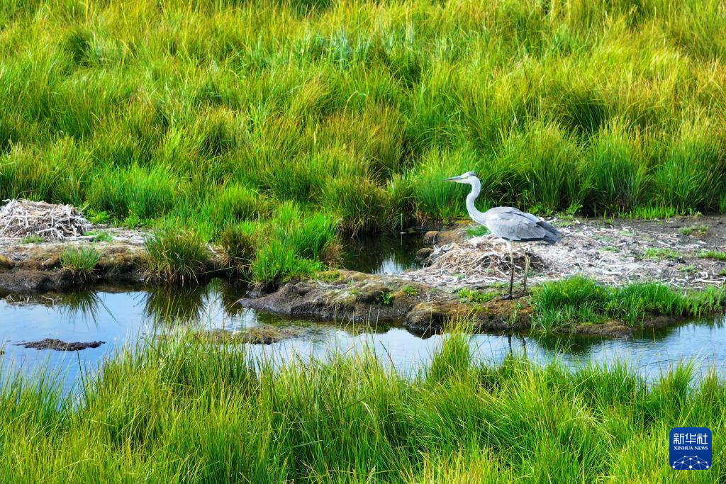 這是在尕海濕地拍攝的蒼鷺(9月4日攝,無人機照片)。新華社發(fā)(拉瑪才旦 攝)