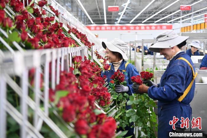 目前,當地建成面積20萬平方米高新智能化溫室,鮮花四季盛開。記者看到,棚頂紅色的全自動補光燈正在為玫瑰“延長光照時長”。精準控制營養(yǎng)液成分和濃度的智能化水肥一體化系統(tǒng)、自動化分選等高新設備投入,科技種植和品質上升,讓臨夏成為中國重要的優(yōu)質鮮切花生產基地,日產20萬枝鮮切花,海內外訂單不斷。