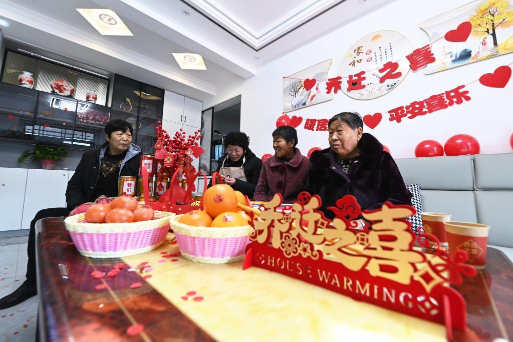 1月15日,在古浪縣大靖鎮(zhèn)三臺村生態(tài)及地質(zhì)災害避險搬遷安置點,親友們來到吳明月的新家暖房。