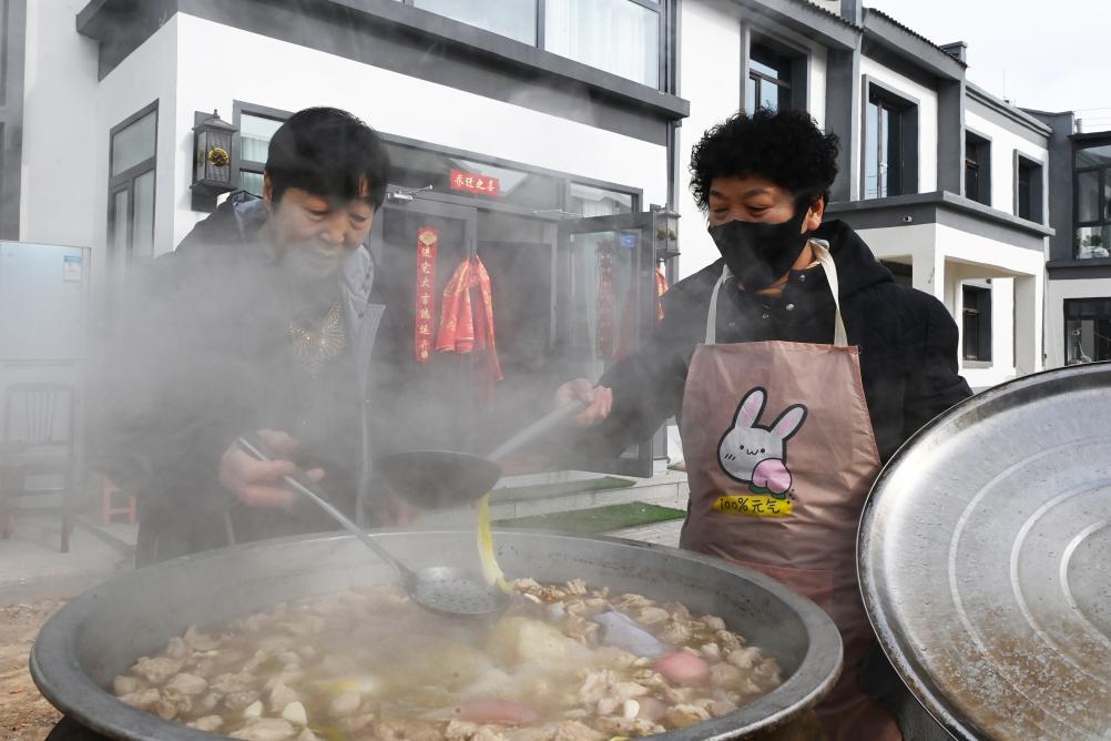 1月15日,在古浪縣大靖鎮(zhèn)三臺村生態(tài)及地質(zhì)災害避險搬遷安置點,吳明月的親友們準備喬遷的午餐羊肉燴菜。