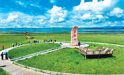 夏日尕海湖,周邊綠意盎然。資料圖片