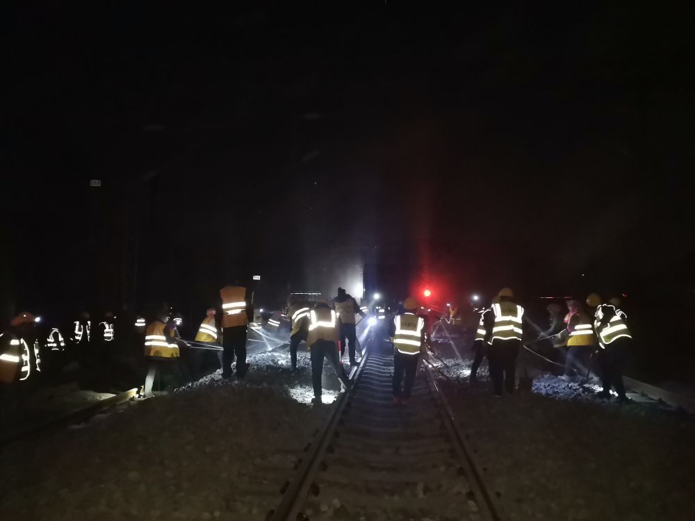 臨近次日3時(shí),現(xiàn)場防護(hù)員與駐站防護(hù)員完成了最后一次通話確認(rèn):“蘭青線老鴉城站卸石砟施工完畢,人員機(jī)具撤離現(xiàn)場,檢查確認(rèn)卸砟地段無侵線、無遺留,關(guān)閉錄音筆、語音提示器?!贝舜涡俄氖┕A滿落下帷幕。