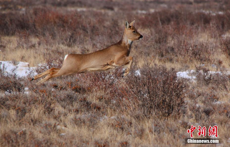 圖為奔跑中的狍鹿。牛繼榮 攝