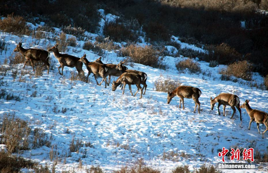 春日里,位于甘肅省武威市天祝藏族自治縣境內(nèi)馬牙雪山腳下的抓喜秀龍草原,生機(jī)勃勃,國(guó)家二級(jí)保護(hù)動(dòng)物馬鹿、狍鹿時(shí)而奔跑,時(shí)而跳躍,成群結(jié)隊(duì)“出游”,與覆雪的草地相映成趣,構(gòu)成了一幅美麗的生態(tài)畫卷。