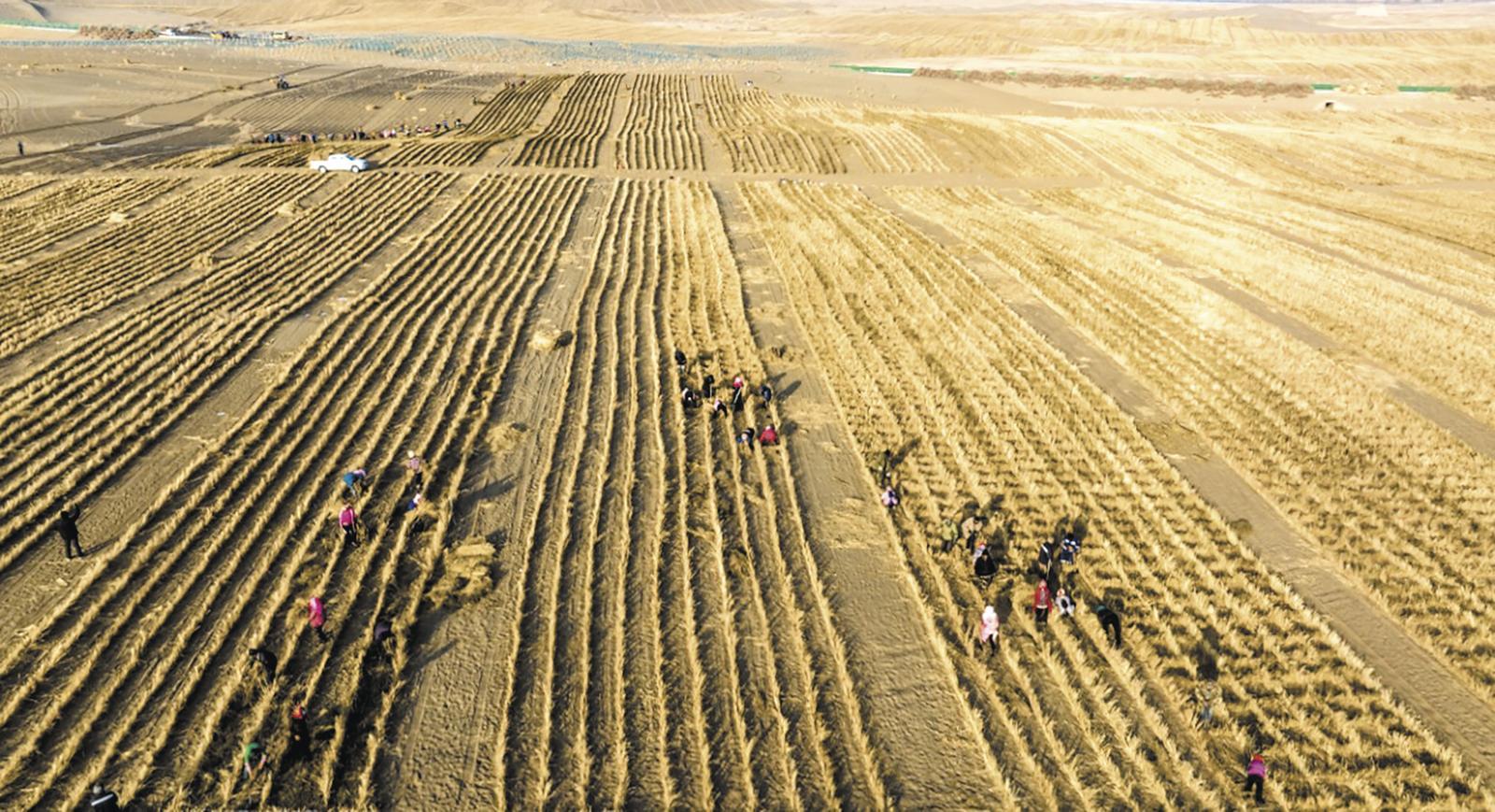 酒泉市金塔縣工程固沙現(xiàn)場(chǎng)。 甘肅省林業(yè)和草原局 供圖