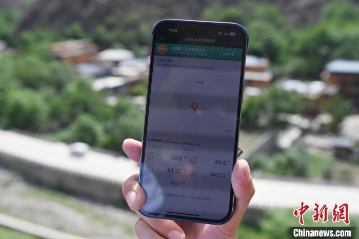 圖為工作人員用手機觀看智慧蜂箱數(shù)據(jù)。中新社記者 九美旦增 攝