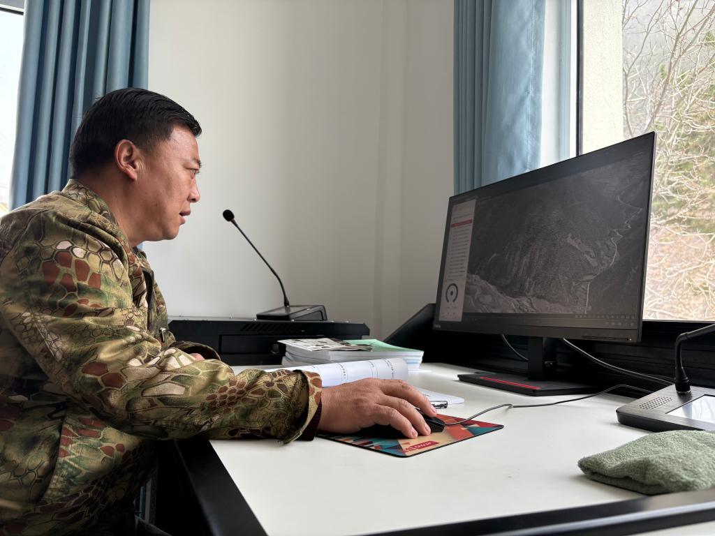 張路達(dá)在電腦前查看轄區(qū)內(nèi)實(shí)時(shí)情況。新華社記者 刁慧琳 攝