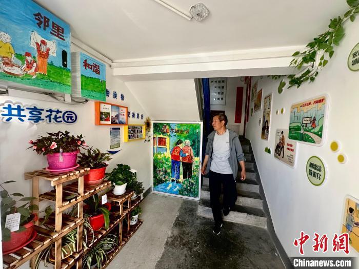 圖為裕興社區(qū)樓道內(nèi)的共享花園。楊艷敏 攝