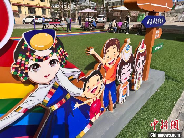 裕興社區(qū),是祁連山腳下甘肅張掖市肅南裕固族自治縣打造的“互嵌式社區(qū)樣板”。圖為社區(qū)內(nèi)放置的民族團結標識。楊艷敏 攝