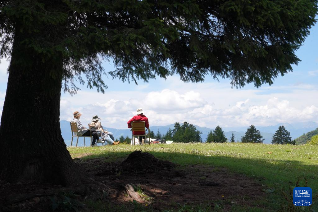 幾位游客在舟曲拉尕山上露營游玩(7月12日攝)。新華社記者 馬寧 攝