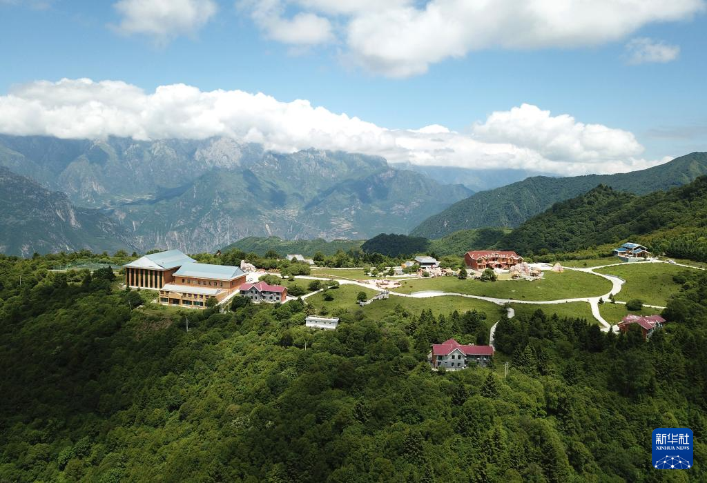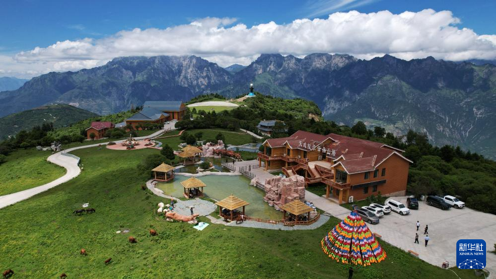 這是7月12日拍攝的舟曲拉尕山一處特色民宿(無人機照片)。新華社記者 陳斌 攝