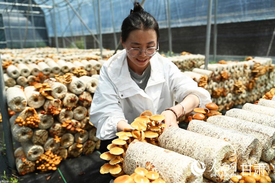 走進甘肅省甘南州卓尼縣木耳鎮(zhèn)納朵朵生態(tài)農(nóng)業(yè)有限責(zé)任公司食用菌種植基地,一朵朵嬌嫩飽滿的滑子菇從菌棒中競相冒出,菇垛層層疊疊,菌蓋色澤金黃鮮亮,長勢喜人?!案咴酵硎?,剛好錯峰上市,完全不愁銷路。”該公司負責(zé)人張納欣說。