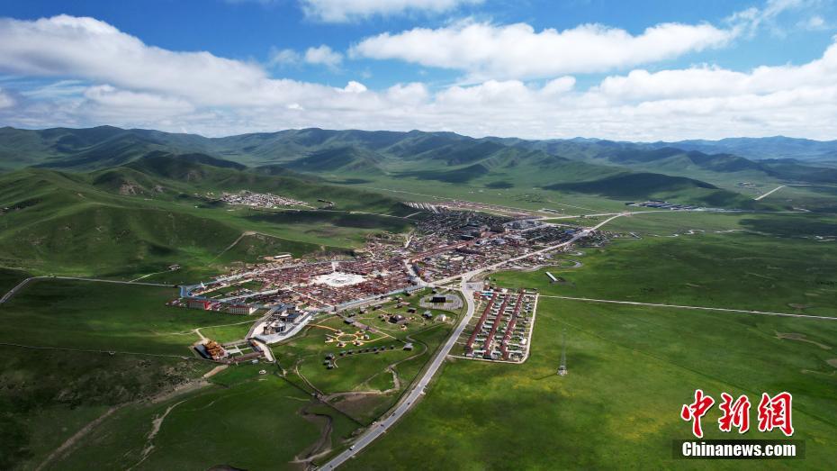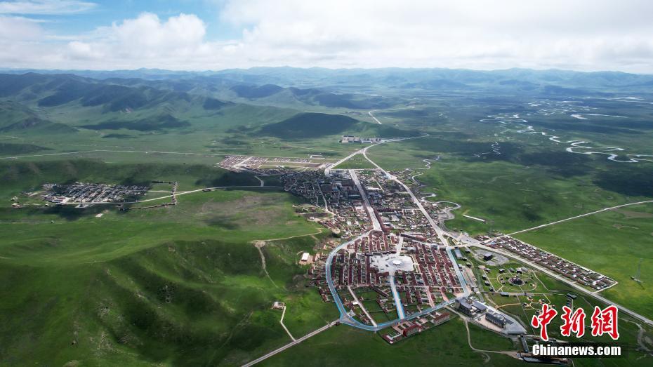 7月12日,航拍視角下的瑪曲縣阿萬倉鎮(zhèn)。(無人機照片)中新社記者 九美旦增 攝