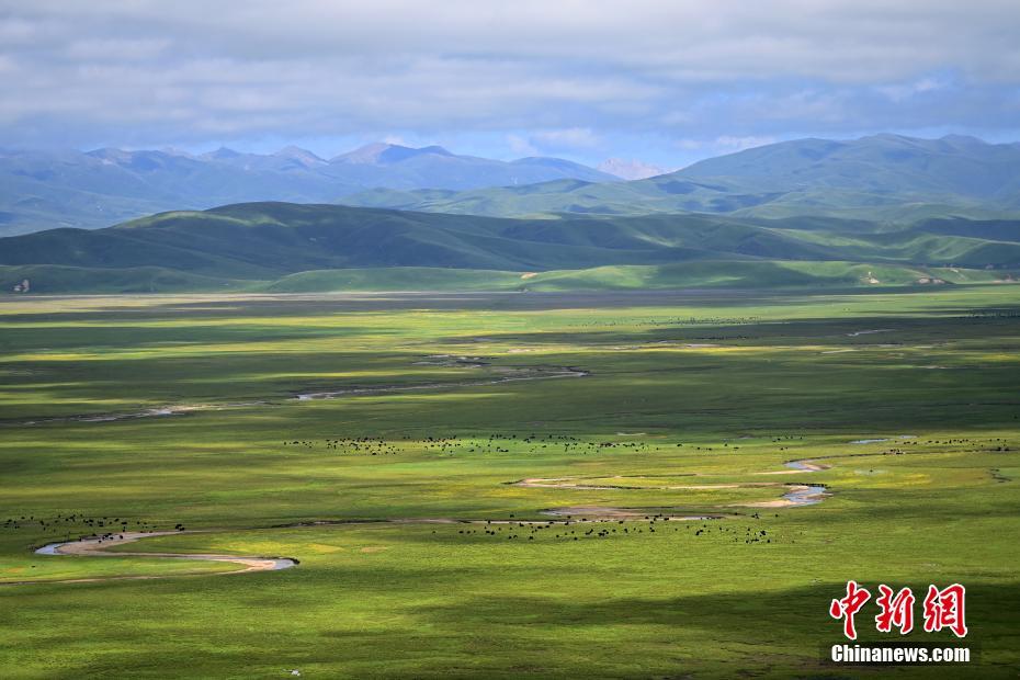 7月12日,瑪曲縣阿萬倉濕地風(fēng)景如畫。中新社記者 九美旦增 攝
