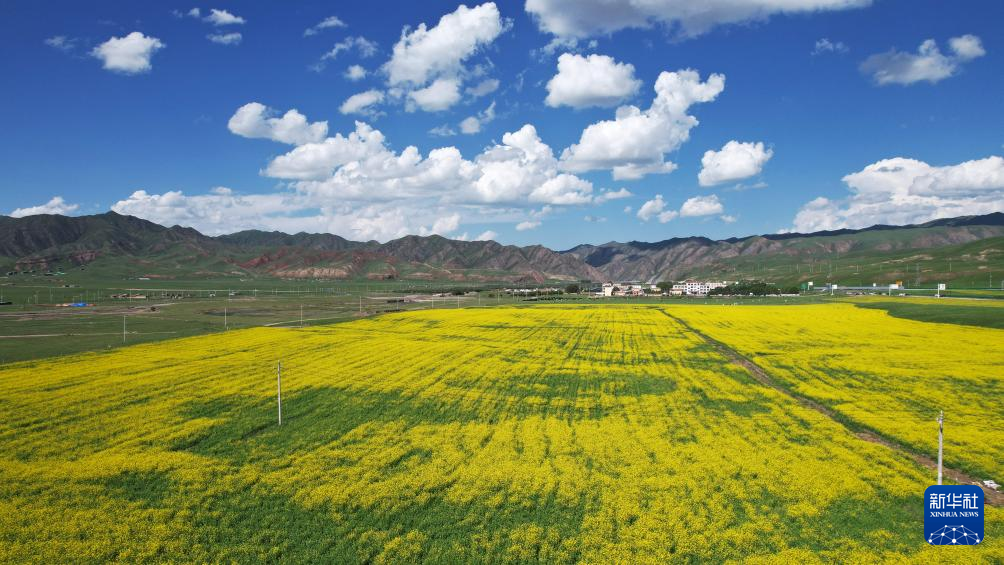 7月10日在桑科草原拍攝的油菜花海(無(wú)人機(jī)照片)。新華社記者 魚(yú)瀾 攝