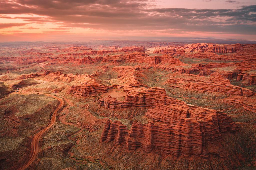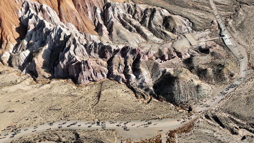 人們?cè)诟拭C省張掖外星谷星際主題地質(zhì)公園參加徒步活動(dòng)。新華社發(fā)(成林 攝)