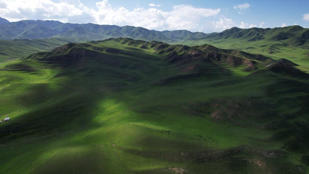 甘肅省甘南藏族自治州桑科草原風(fēng)光(無(wú)人機(jī)照片)。新華社記者 陳斌 攝