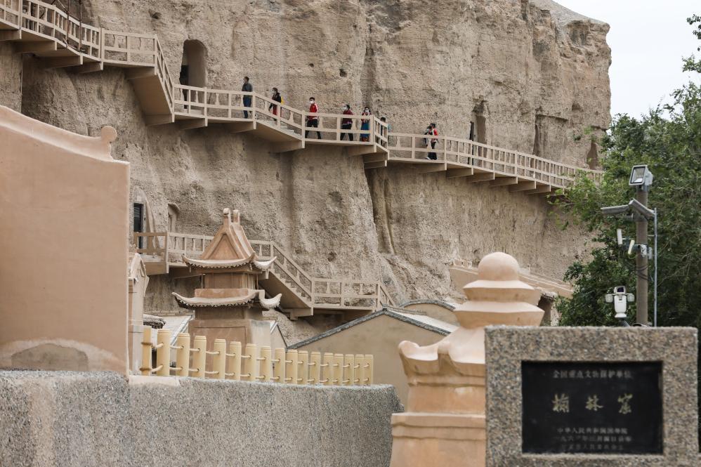這是在甘肅省酒泉市瓜州縣境內(nèi)拍攝的榆林窟一景。新華社發(fā)(馬希平 攝)