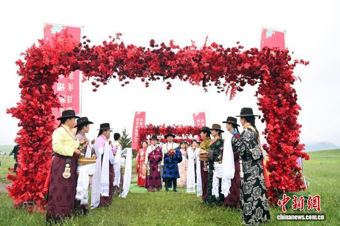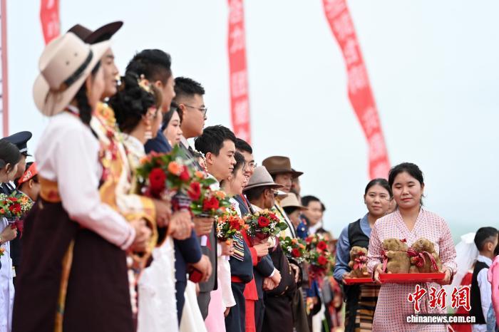 圖為草原集體婚禮現(xiàn)場。中新社記者 九美旦增 攝