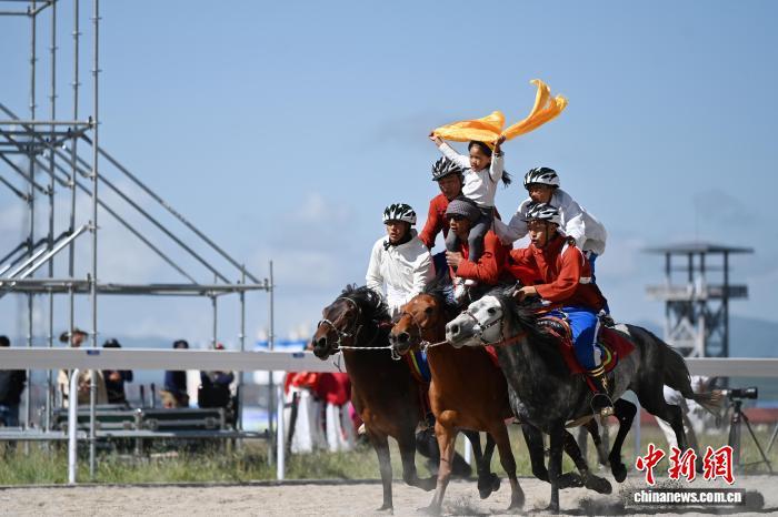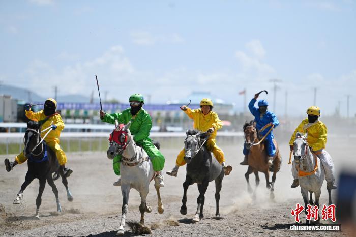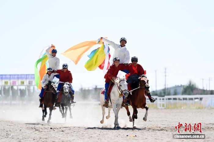 8月13日,九色甘南香巴拉·瑪曲第十六屆格薩爾賽馬會在甘肅甘南藏族自治州瑪曲縣格薩爾賽馬中心開幕。來自貴州、西藏、青海、四川、甘肅等省區(qū)的45支參賽隊962匹駿馬在瑪曲草原上展開為期5天的角逐。