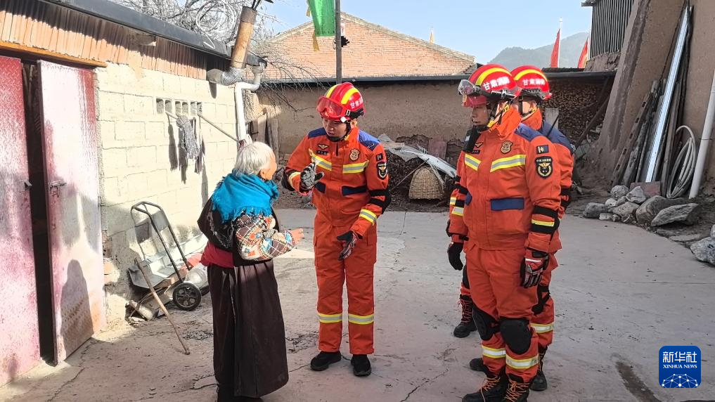 1月26日,甘肅省消防救援總隊(duì)救援人員在甘南州迭部縣向居民了解地震受損情況。新華社發(fā)(甘肅省消防救援總隊(duì)供圖)