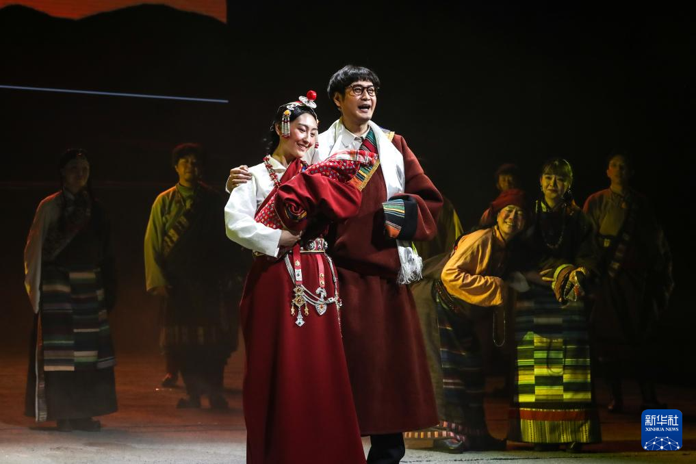 1月28日晚,在甘肅黃河劇院,甘肅省話劇院演員在話劇《青青的阿萬倉》中表演。新華社記者 郎兵兵 攝