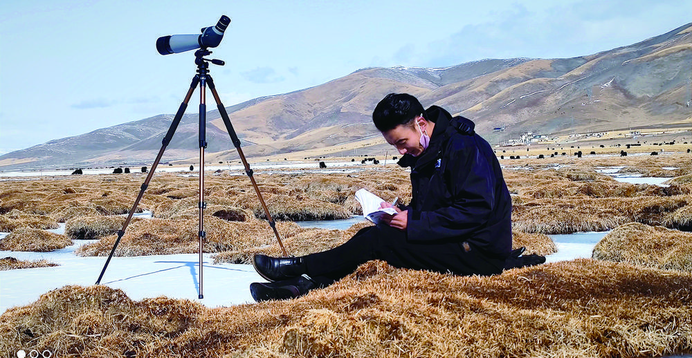 生態(tài)管護(hù)員昂文才仁開展鳥類監(jiān)測。