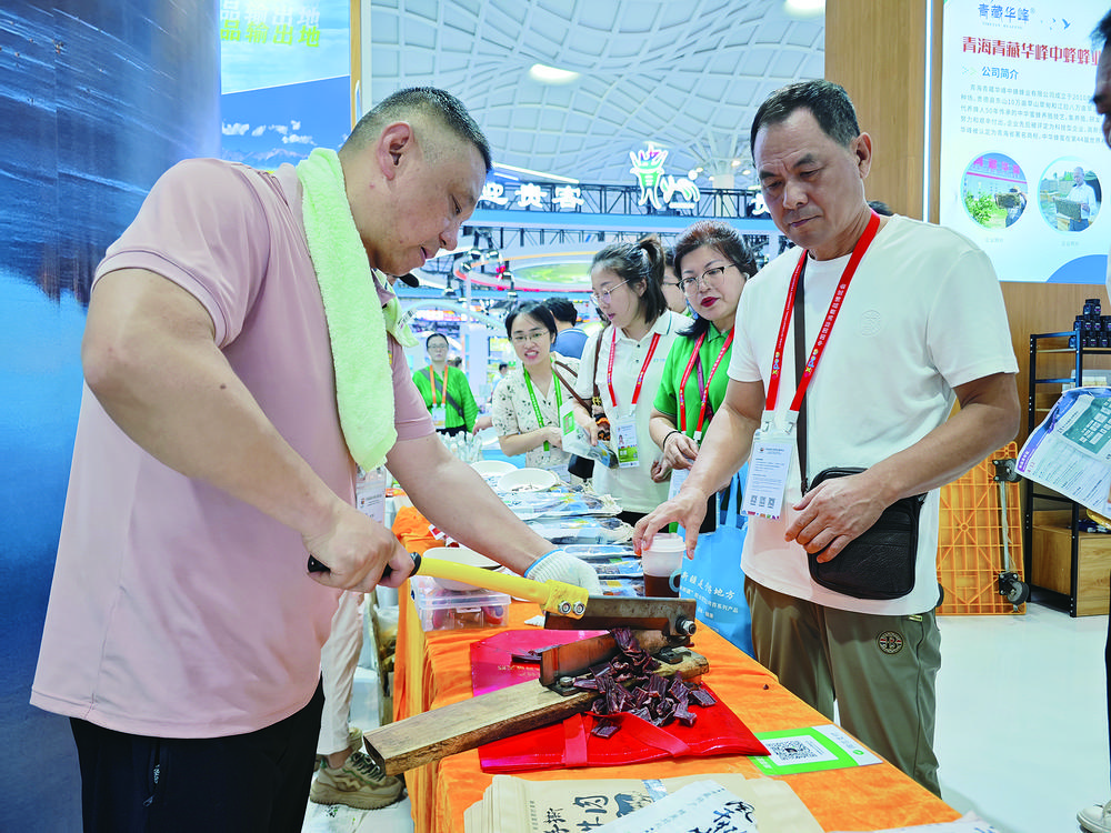 4月14日,第四屆中國(guó)國(guó)際消費(fèi)品博覽會(huì)第二天。隨著熱度的增加,青海展館內(nèi)人來人往,許多綠色有機(jī)新產(chǎn)品相繼亮相,有風(fēng)味獨(dú)特的風(fēng)干牦牛肉干、手撕牦牛肉干,有營(yíng)養(yǎng)豐富的有機(jī)沙棘原漿、黑枸杞和紅枸杞,還有創(chuàng)新產(chǎn)品牦牛三角奶酪酥和拉絲牦牛老酸奶風(fēng)味軟糖等。很多人慕名而來,不時(shí)咨詢洽談和交流購(gòu)買。對(duì)于近兩年火熱的青海高原冷涼蔬菜,也有不少客商十分感興趣,紛紛前來了解。