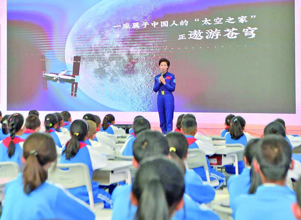 中國首位女航天員劉洋正在為同學(xué)們授課。記者 王偉才 李娜 攝