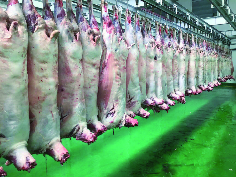 企業(yè)加工車間內(nèi)即將入市的胴體藏羊肉。記者 譚梅 攝