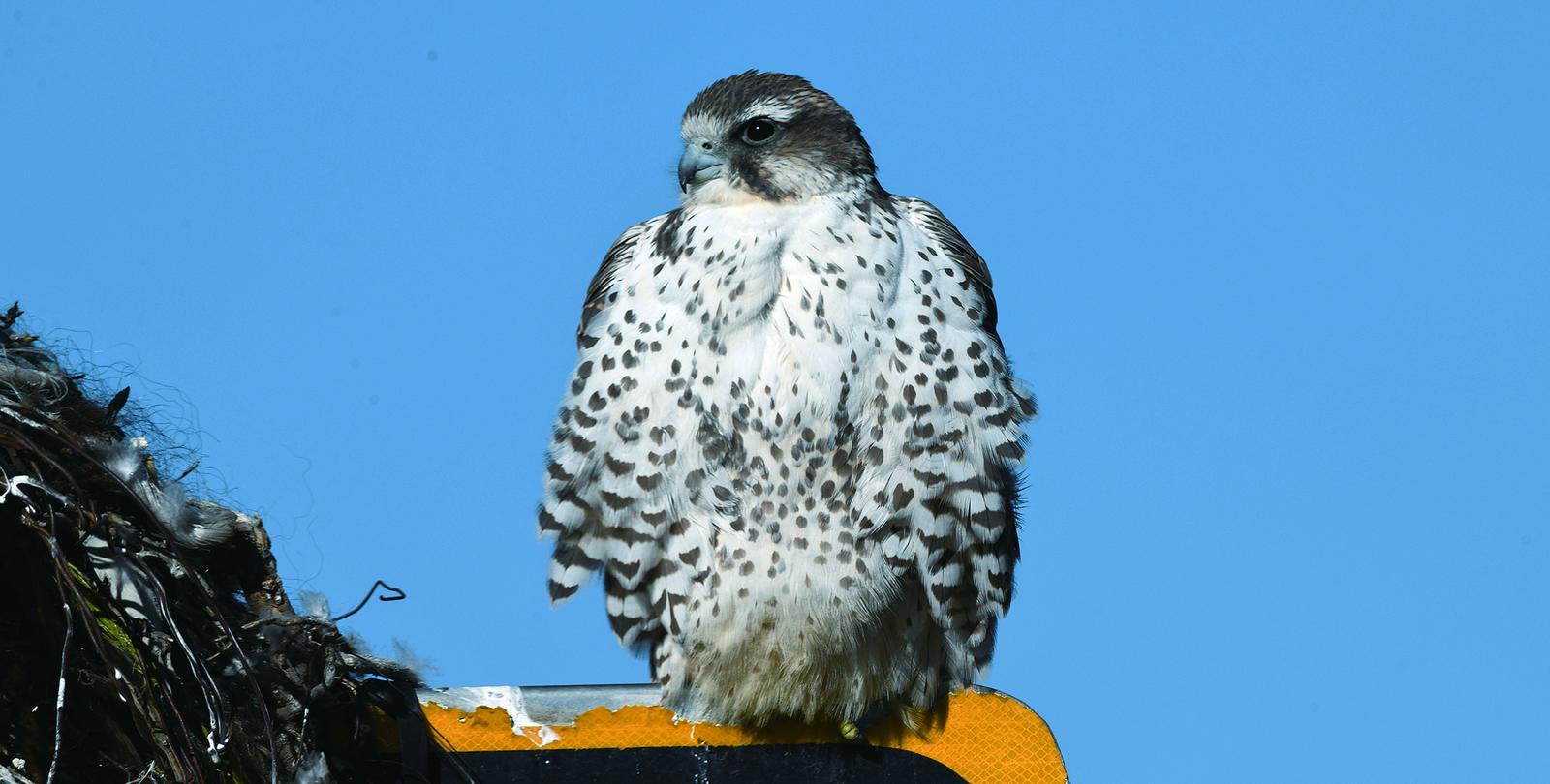 蹲在路牌上的獵隼