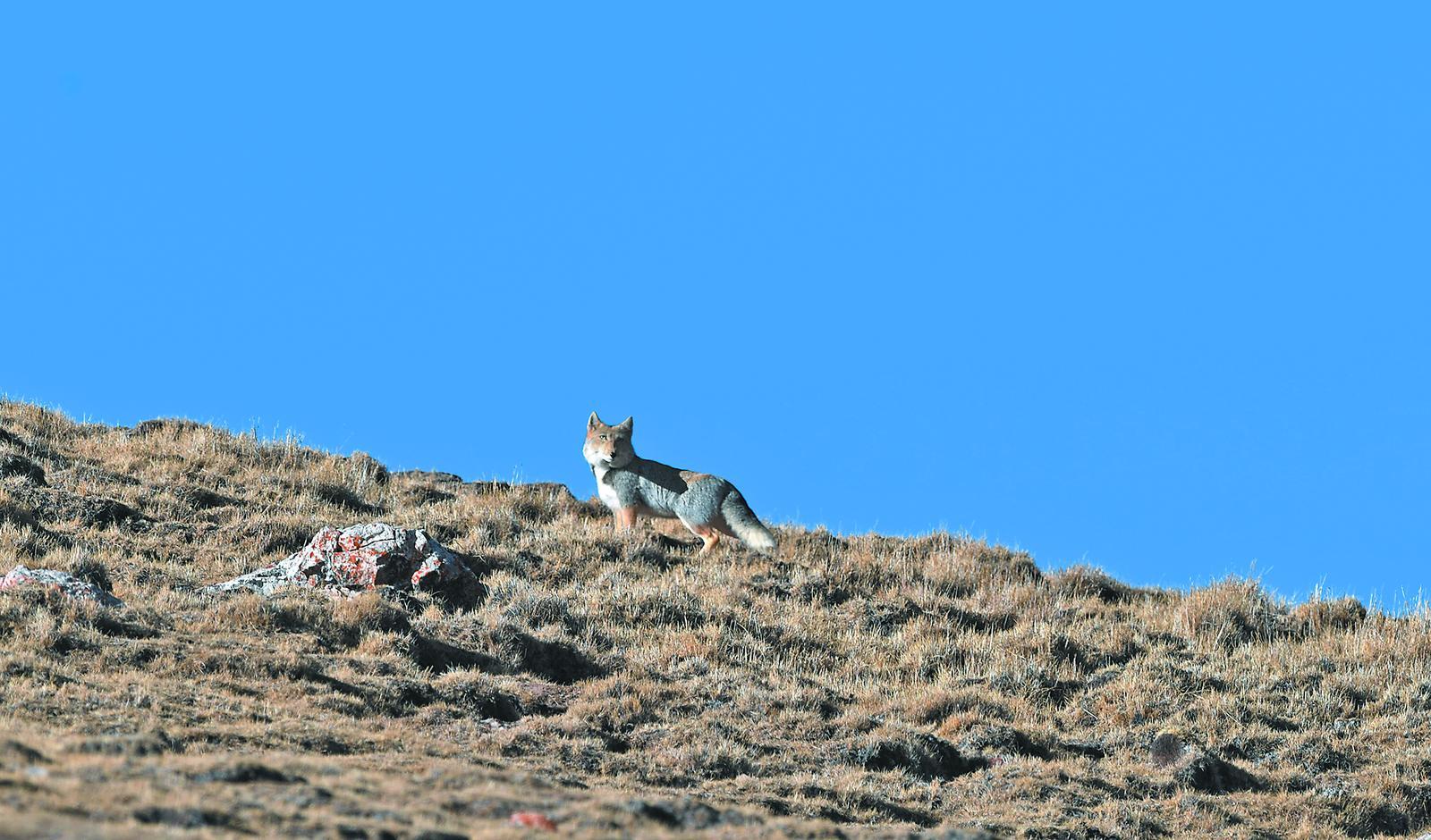 山梁上遠(yuǎn)眺的藏狐。