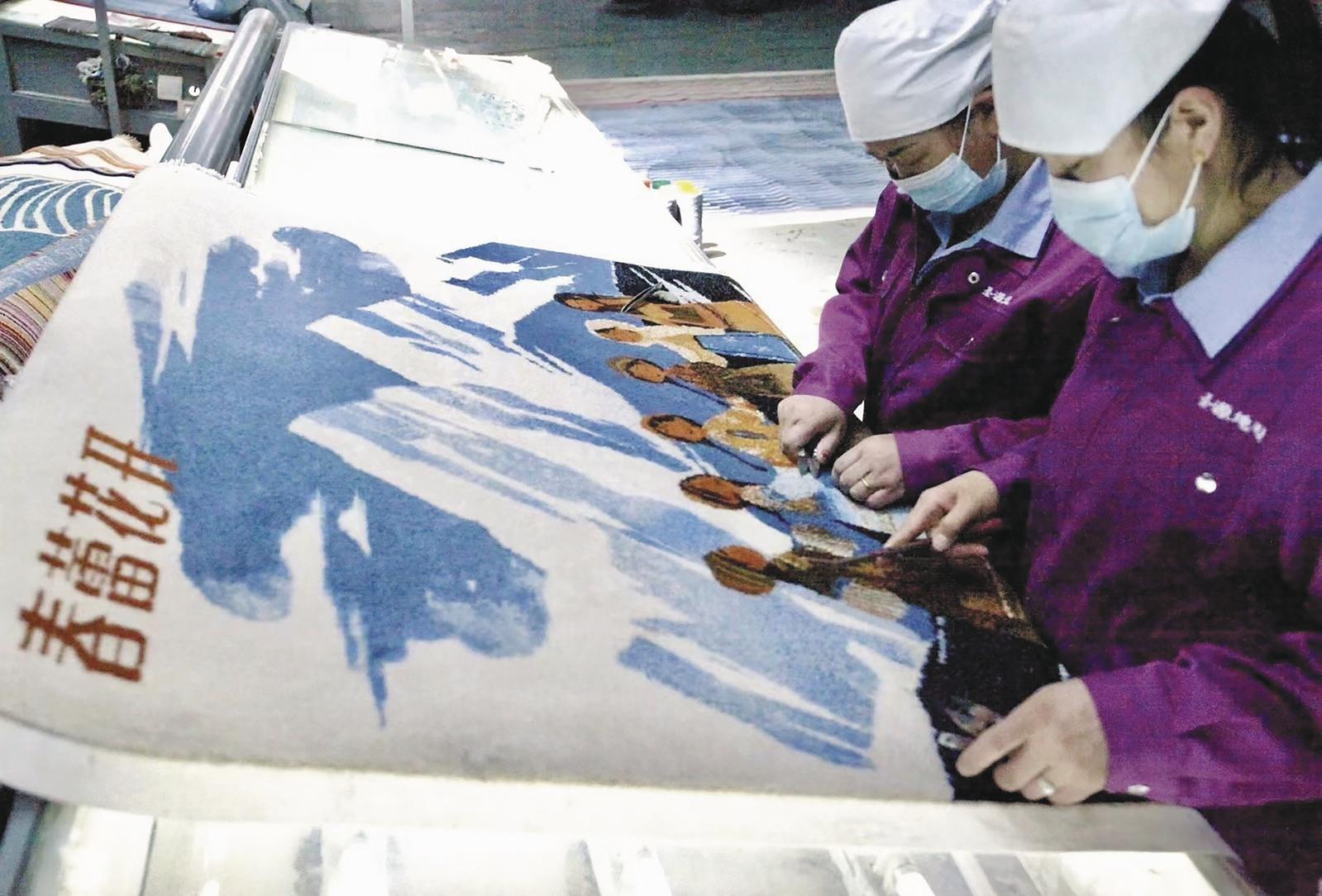 圣源地毯工作人員編織美好期待。南川工業(yè)園區(qū)供圖