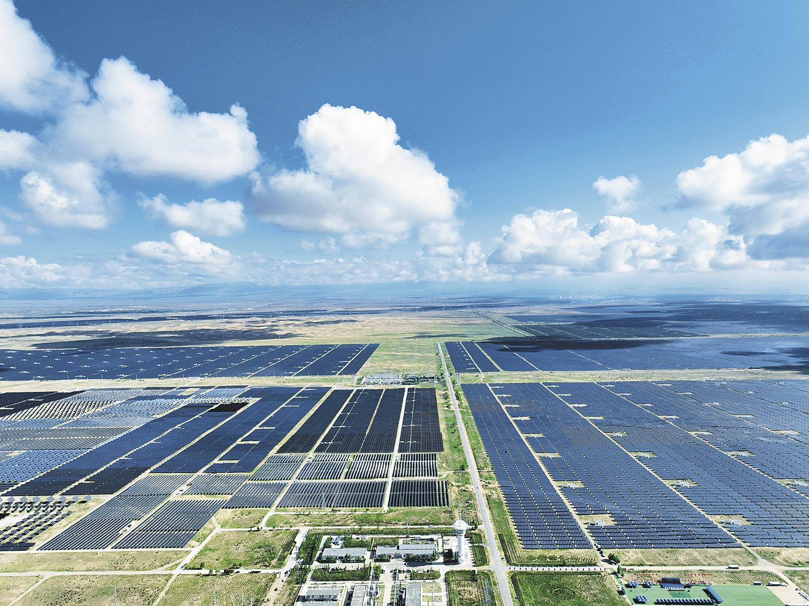 塔拉灘上的光伏藍(lán)海。記者 洪玉杰 攝