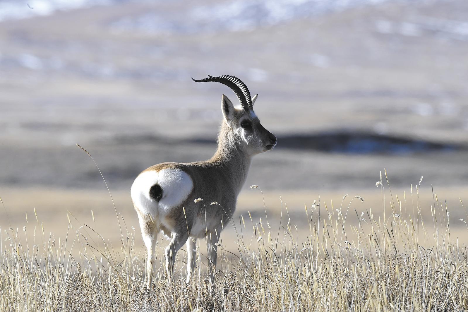 草原上覓食的藏原羚。青海日?qǐng)?bào)記者 張多鈞 攝