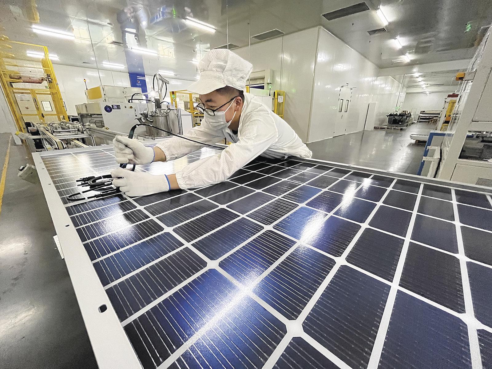 “近年來,‘黃河造’光伏產(chǎn)品深受國(guó)際市場(chǎng)青睞,我們致力于打造集‘高效率、高可靠、高顏值’于一體的光伏產(chǎn)品,不僅具備高效發(fā)電功能,能夠降低建筑能耗,還可替代傳統(tǒng)建材,完美融入建筑外觀?!蔽鲗幏止綢BC產(chǎn)線工藝工程師魏蓉說。