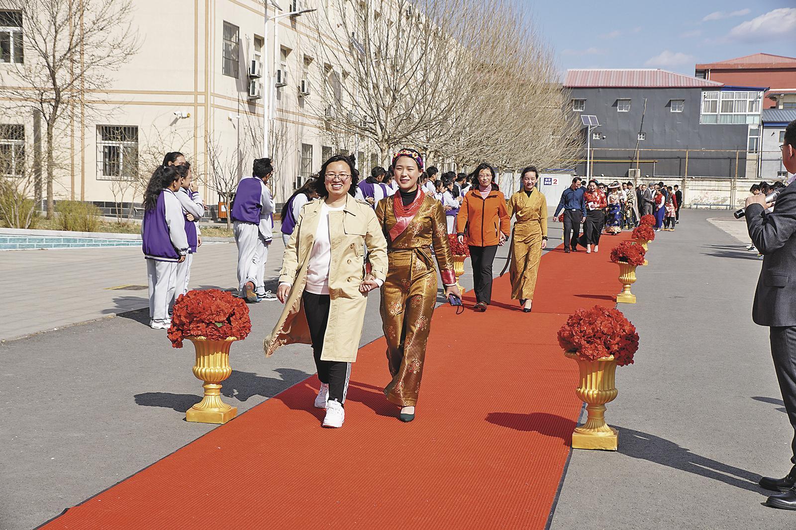 老師像“家人”一樣陪玉樹(shù)學(xué)生走成人禮紅毯。
