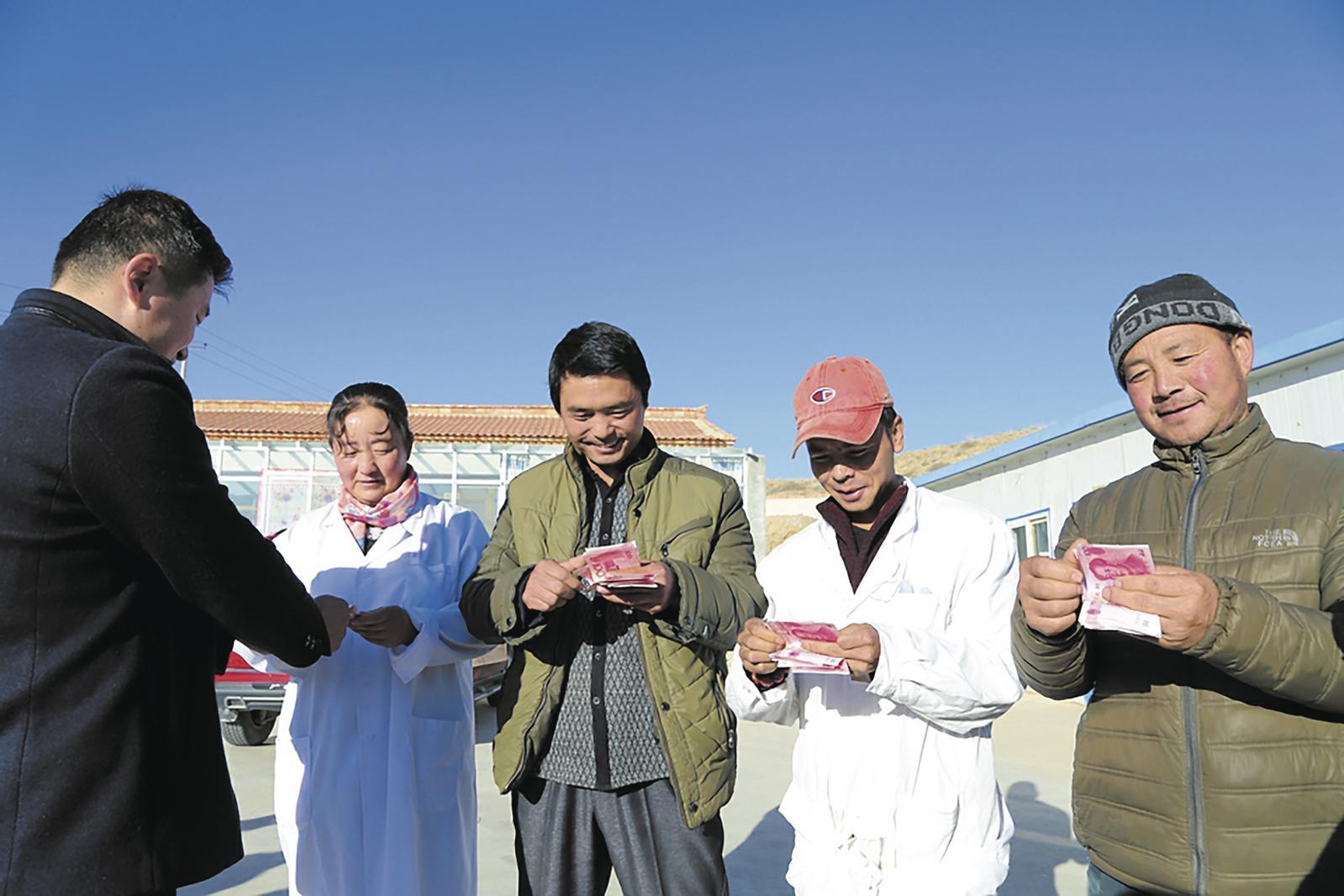 獺兔養(yǎng)殖專業(yè)合作社項(xiàng)目戶正在分紅。