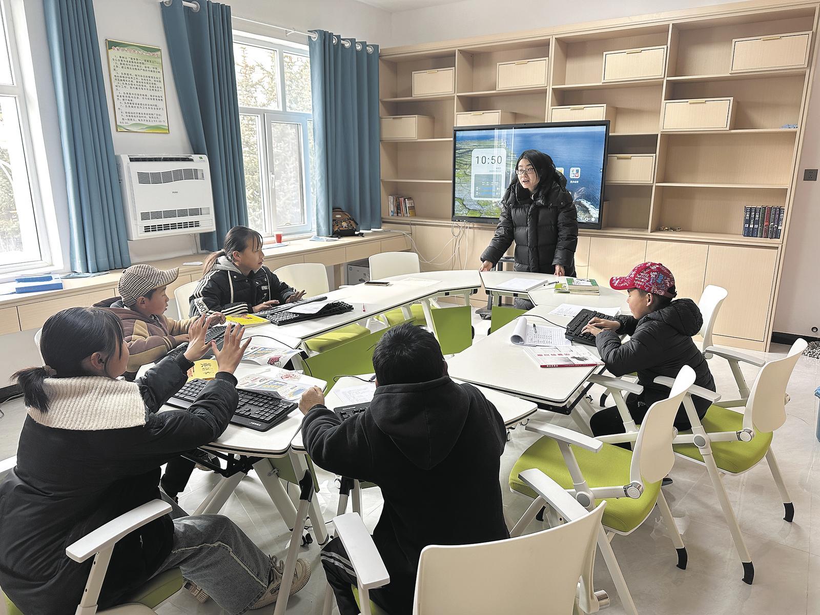 朱亞輝在圖書館給孩子們講解電腦鍵盤基礎操作。記者 劉祎 攝