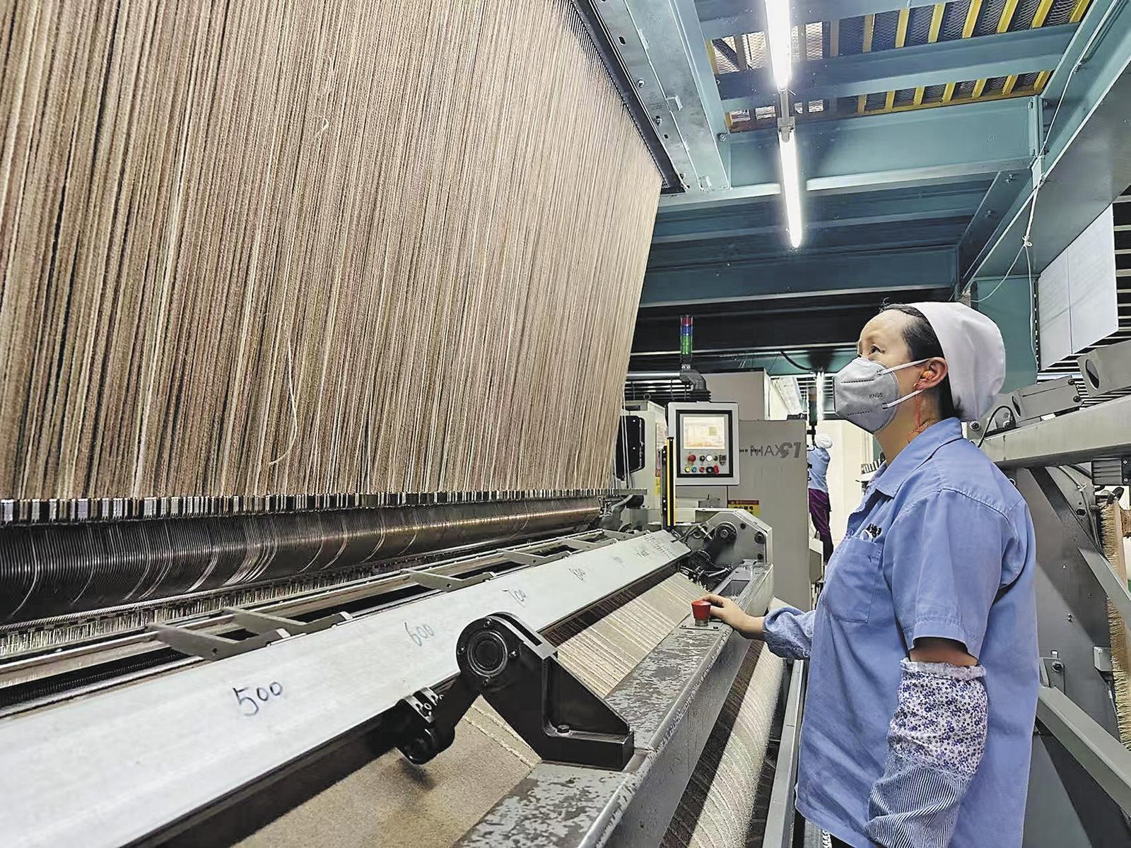 在研發(fā)中心,航空地毯項(xiàng)目組正在調(diào)試新配方?!耙_(dá)到航空A類阻燃標(biāo)準(zhǔn),阻燃性要提升至普通地毯的3倍?!弊曰ㄕ故局钚聵悠?,“去年有一項(xiàng)指標(biāo)沒通過,現(xiàn)在調(diào)整了新方案,預(yù)計(jì)下月送審?!绷慨a(chǎn)后,將填補(bǔ)西北航空地毯生產(chǎn)的空白。