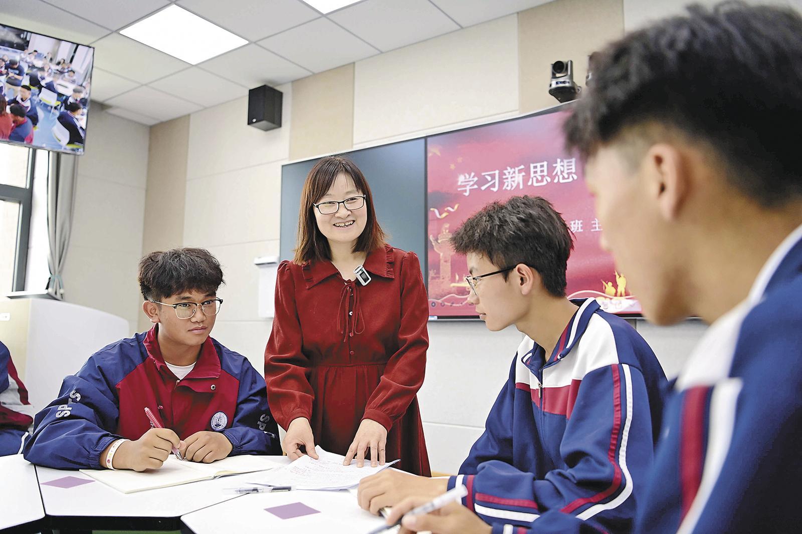 肖飛雪的話音剛落,同學們就熱烈地討論了起來?!靶滤枷胧菆猿中掳l(fā)展理念,就像我們省的塔拉灘,那里的土地非常貧瘠、荒涼,正是通過新發(fā)展理念,在塔拉灘建起光伏園區(qū),光伏板在吸收太陽能,光伏板下還有光伏羊,這不僅增加了當地群眾的經濟收入,這里的生態(tài)也越來越好了……”聽到東格卓瑪的發(fā)言,肖飛雪眼里的笑意越來越深,她沒想到,這位來自高原的姑娘,能將宏大的“新思想”如此具體、鮮活地扎根于家鄉(xiāng)的土地。