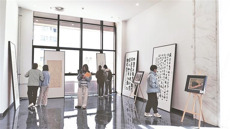 以鑄牢中華民族共同體意識為主線,學(xué)生們近距離觀摩書法創(chuàng)作。青海理工學(xué)院提供