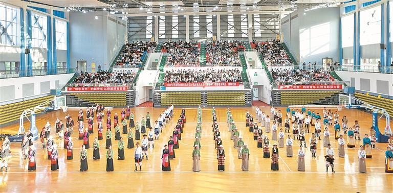 “大家手拉手,一起來!”在青海職業(yè)技術(shù)大學(xué)教學(xué)樓底下,上百名學(xué)生手拉手,腳踩歡快的節(jié)奏,或轉(zhuǎn)圈或牽手向前聚攏?!半m說我是漢族,但特別喜歡跳鍋莊,各民族同學(xué)手拉手跳舞的感覺真的特別好?!蔽璧溉?nèi),來自陜西的大二學(xué)生劉洋興奮地說。