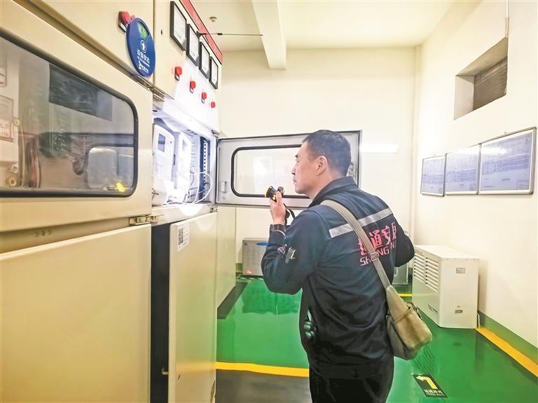 世通國際小區(qū)服務(wù)中心工作人員檢查設(shè)施設(shè)備。 記者 李延平 攝