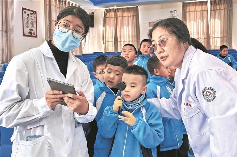 在德令哈市實驗小學(xué),援青醫(yī)療專家和海西州人民醫(yī)院的醫(yī)生正在給學(xué)生進(jìn)行視力篩查。