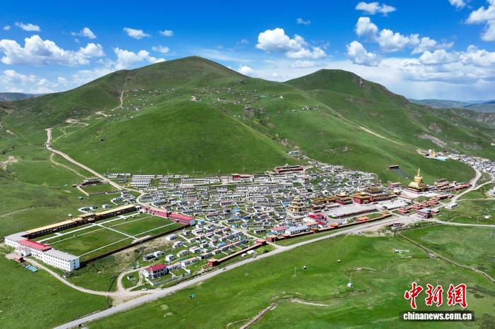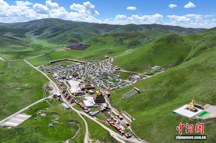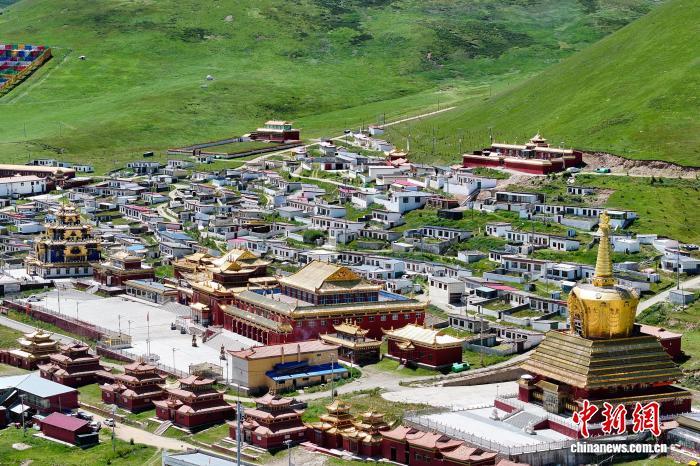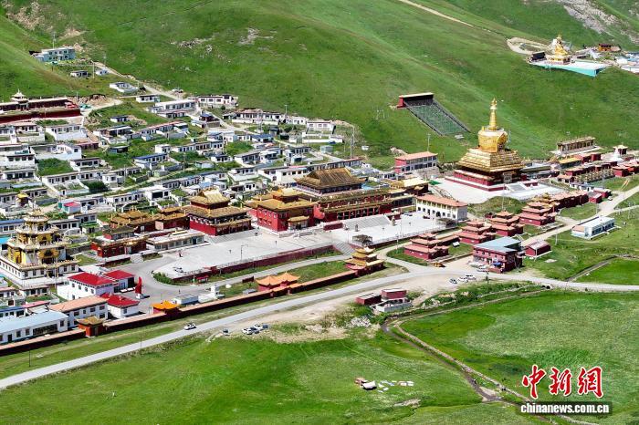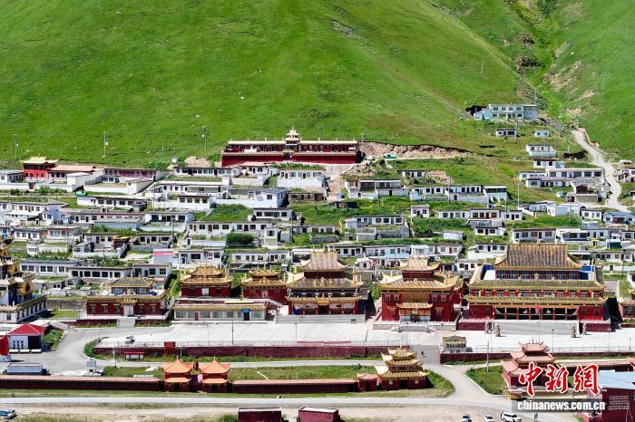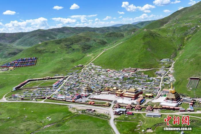 8月16日,航拍位于青海省果洛藏族自治州達日縣境內(nèi)的查朗寺。中新社記者 薛蒂 攝