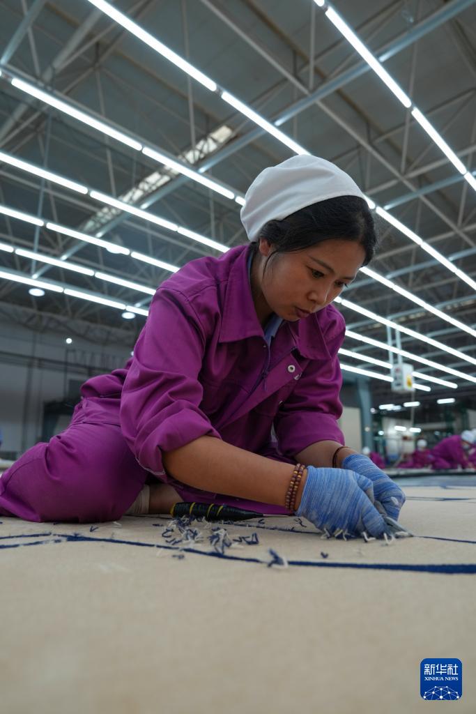 9月27日,在西寧市圣源地毯集團有限公司生產(chǎn)車間,一名操作工在制作藏毯。新華社記者 杜笑微 攝